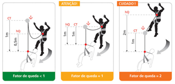 Esse é o ponto mais importante com relação à questão do peso do trabalhador, mas precisamos entender o que ocorre durante uma queda. Quando um corpo qualquer cai, ele acelera e ganha energia. Dependendo de como esse corpo vai ser parado, essa energia pode ser dissipada, ou distribuída, de uma forma que pode lesionar o trabalhador.